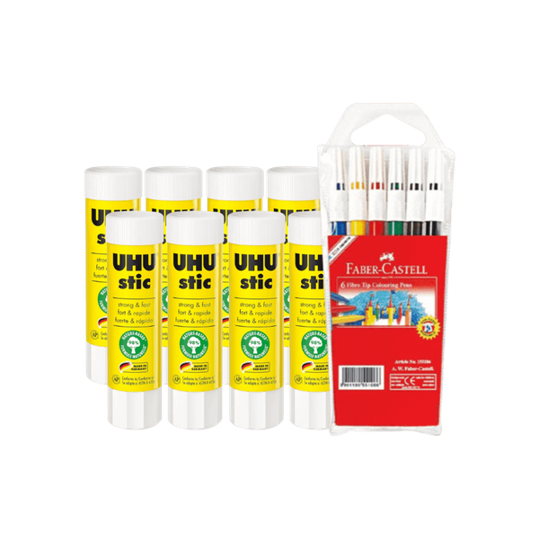 The set includes: (8 Pcs) Uhu Stick + (6 Pcs) Faber-Castell Sketch Pencils