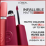 Bold, hydrating lipstick with 16H matte wear and hyaluronic acid for comfort