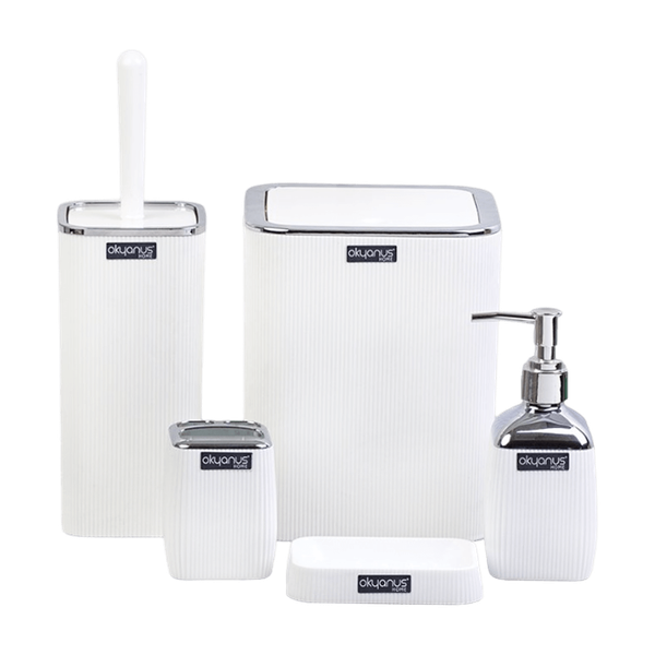 Okyanus Stripe Square Bathroom Accessories Set - White/Chrome - Drops