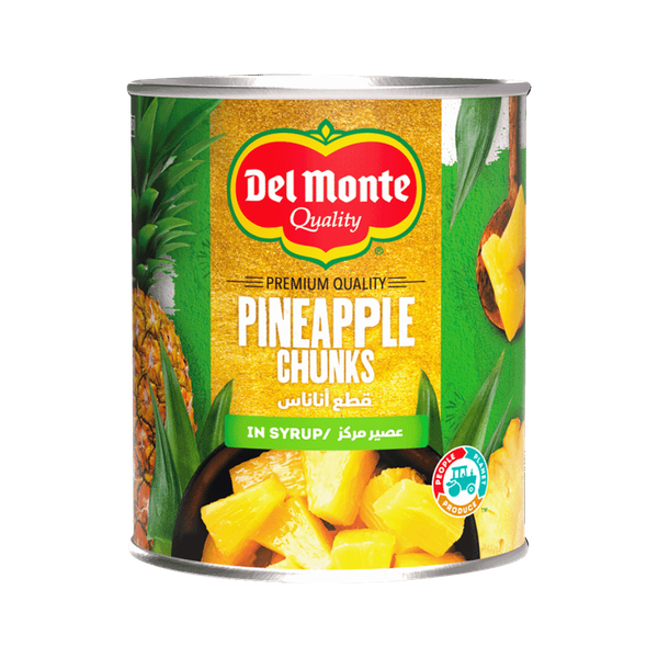 Tropical pineapple chunks in light syrup, ideal for salads, smoothies, or toppings - 435 gm