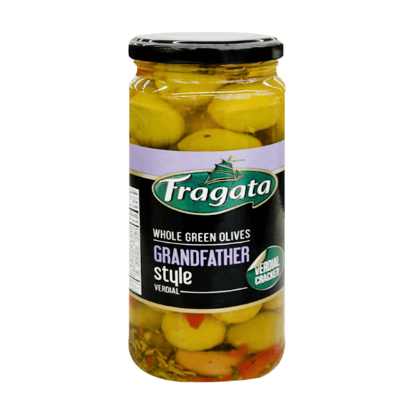 It features cracked whole green Verdial olives marinated with red peppers, red garlic, cumin, and oregano, offering a rich and aromatic taste reminiscent of traditional family recipes - 340 gm
