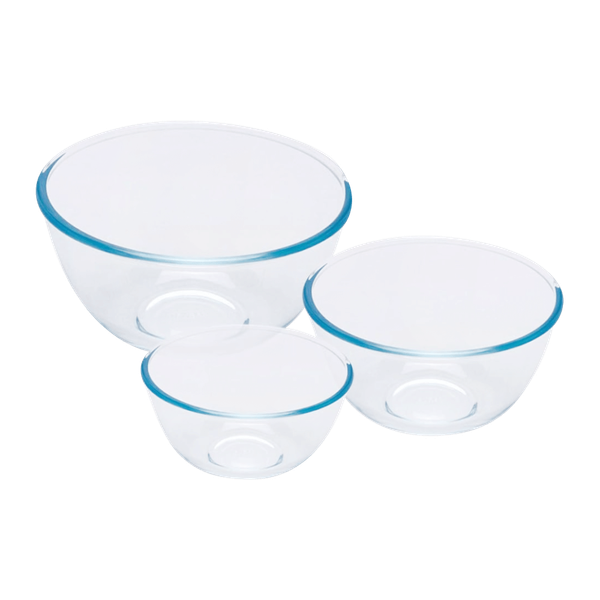 Pyrex offers a versatile range of high-quality glassware designed for baking, roasting, and food preparation. From the 3-piece glass bowl set for mixing and storage to durable roaster sets and classic casseroles made of borosilicate glass, Pyrex provides reliable, heat-resistant solutions for every kitchen need - 3 Pcs (14 + 16 + 21 cm)