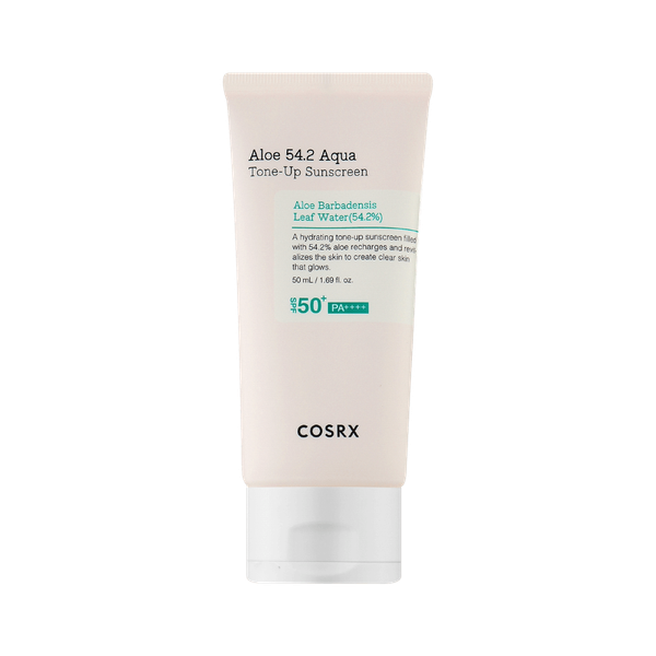 A lightweight sunscreen with SPF 50+ PA+++ that offers broad-spectrum protection against UVA and UVB rays. Infused with 54.2% aloe vera extract, it soothes and hydrates the skin while providing a natural tone-up effect, leaving a fresh and radiant finish - 50 ml