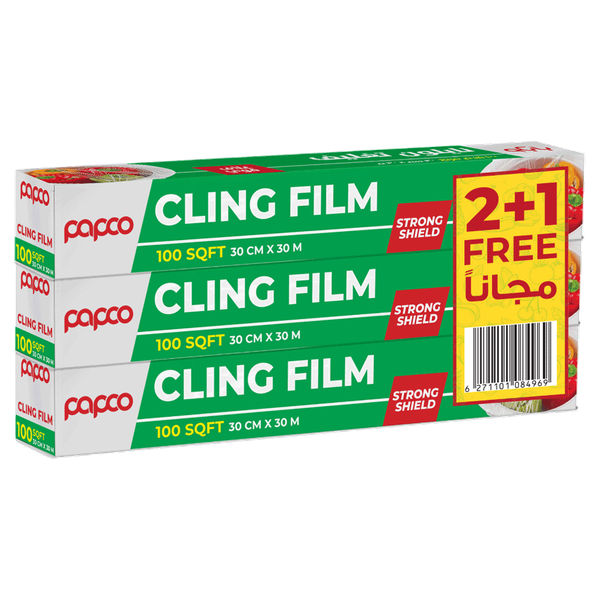 A transparent plastic wrap commonly used in kitchens to cover and preserve the freshness of food items - 100 sqft