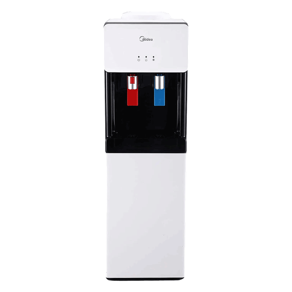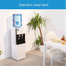 Freestanding top load water dispenser with a stainless steel tank equipped with hot, cold and normal taps for dispensing hot, cold & ambient temperature water Model No: YL1675S-W
