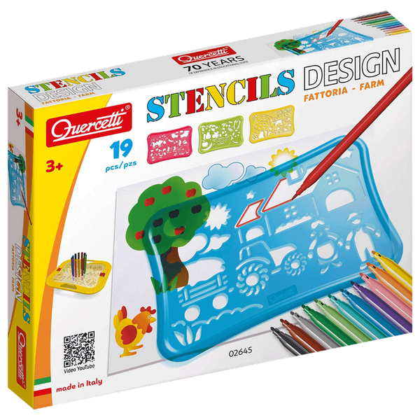 A stencil-based design kit that helps children create farm-themed drawings with guided outlines, improving hand control and artistic expression.