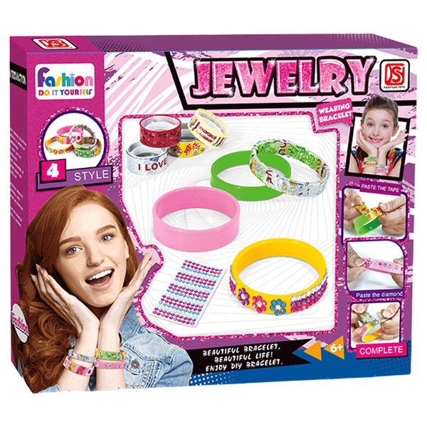 A DIY fashion accessory bracelet set that includes beads, charms, and strings, allowing kids to design and assemble their own unique bracelets.