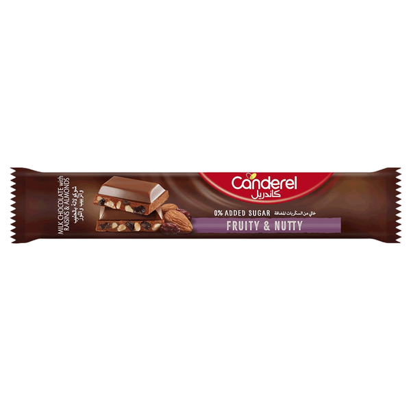A delicious dark chocolate bar infused with crunchy nuts and dried fruits, providing a satisfying combination of textures and flavors in every bite - 27 gm