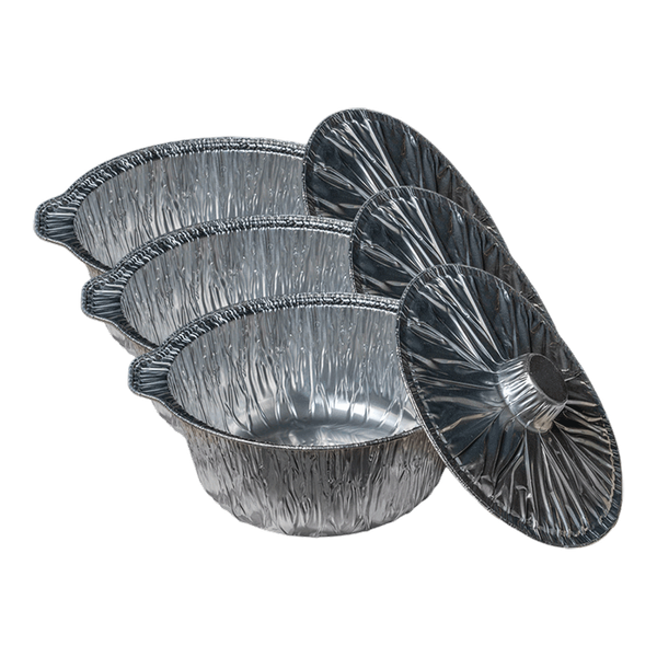 A small aluminum foil container with a secure lid designed to store and transport food while maintaining its freshness and heat retention - 3 Pcs