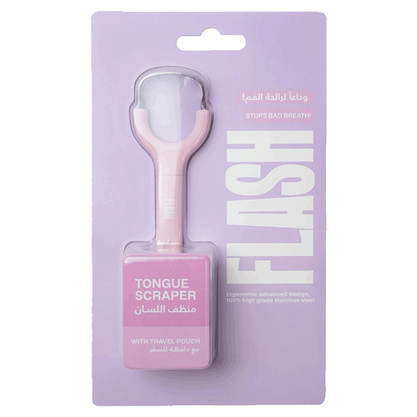 A hygienic tongue scraper designed to effectively remove bacteria and debris from the tongue reducing bad breath while promoting better oral hygiene with a sleek and comfortable pink design - 1 pc