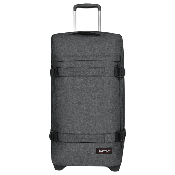 A large four-wheeled check-in luggage in black denim, offering ample storage, a reinforced structure, and smooth-rolling wheels for seamless travel experiences - Weight 3.76 kg