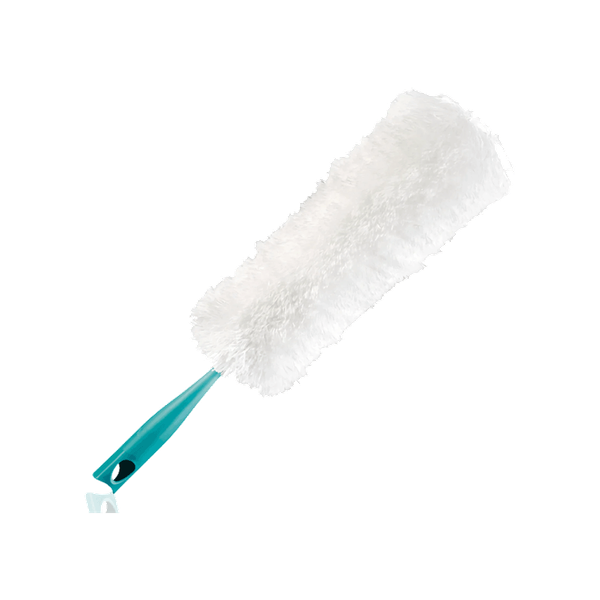 Dusting brush with XL head and static bristles for efficient cleaning of wide surfaces like shelves and cabinets - Made In China