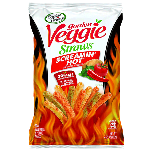 A bold and spicy twist on classic veggie straws made with a blend of garden-grown potatoes spinach and tomatoes seasoned with a fiery kick of heat for an irresistible crunch and flavor-packed snacking experience - 120 gm