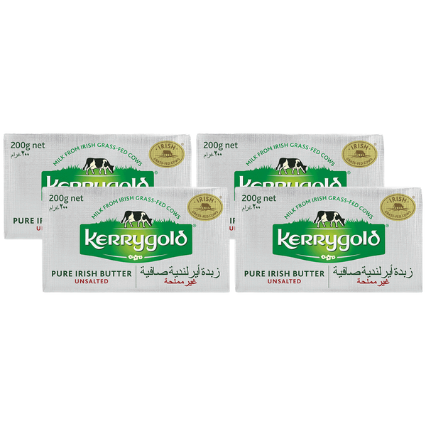 Smooth, creamy unsalted butter from grass-fed Irish cows, perfect for baking, cooking, or spreading on bread - 4 x 100 gm