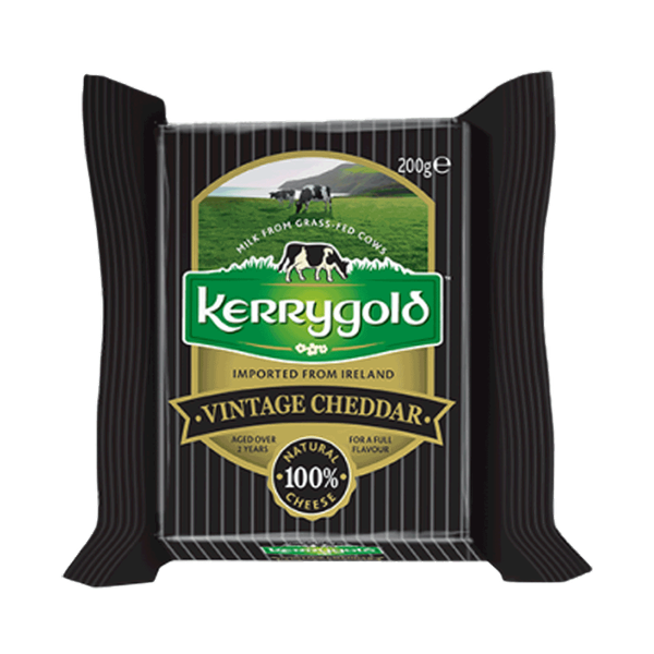 Deeply aged vintage cheddar cheese with sharp, complex flavor, ideal for gourmet platters or bold cheese dishes - 200 gm