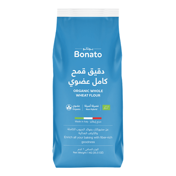 Organic whole wheat flour rich in nutrients and fiber, suitable for hearty breads, muffins, and baked goods - 1 kg