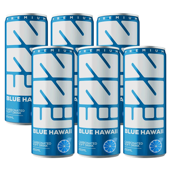 Tropical blue hawaii soda bursting with exotic fruit flavor delivering a fizzy and refreshing twist for a beach-inspired drink - 6 x 250 ml