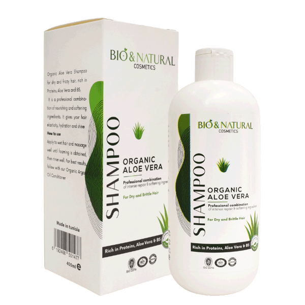 Organic aloe vera shampoo offering deep hydration for dry brittle hair with soothing care - 400 ml