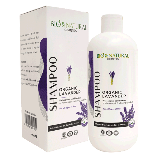 Organic lavender shampoo suitable for all hair types providing calming nourishment - 400 ml