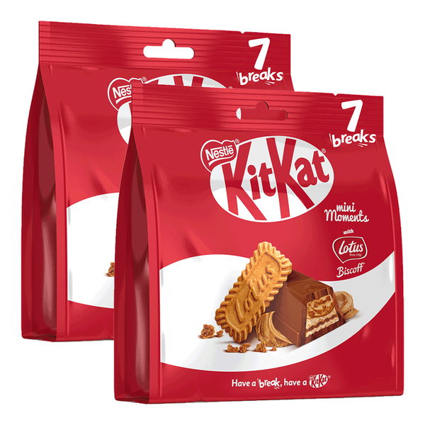 Lotus-flavored mini KitKats featuring spiced biscuit notes wrapped in milk chocolate bite-size treats - 2 x 116.2 gm