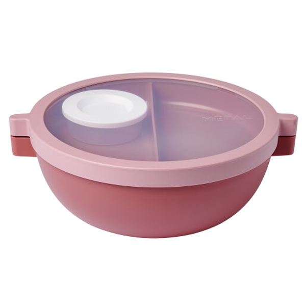 Vivid mauve bowl offering stylish design for meals on-the-go with tight seal BPA-free material and microwave safe.
