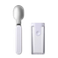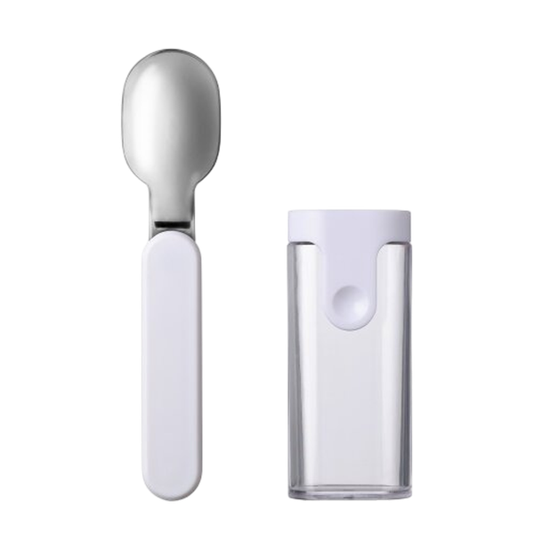 Folding spoon in white with sleek foldable design made for easy packing and safe eating while on-the-go.