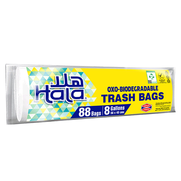 Hala eco-friendly black trash bags designed for daily household waste strong durable and made from biodegradable material - 88 x 8 gallons