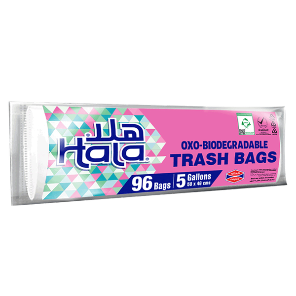 Sustainable black trash bags by Hala with leak-proof structure designed to fit standard bins for clean disposal - 96 x 5 gallons