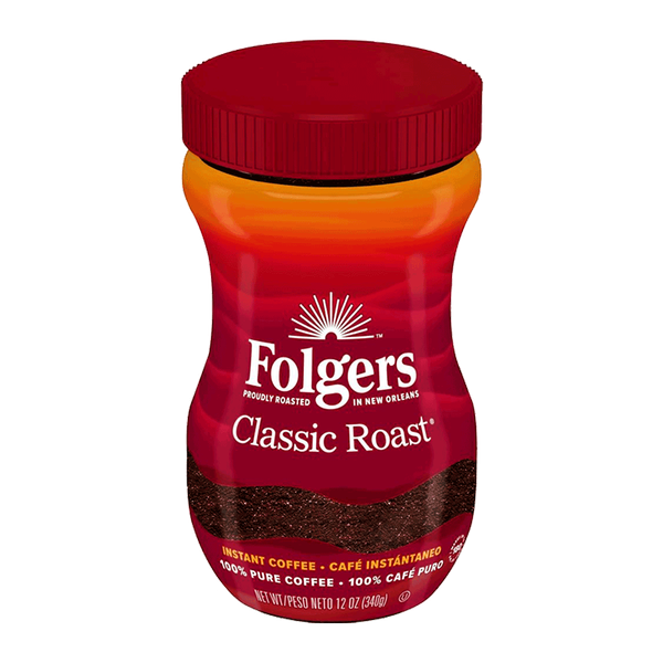 Folgers classic roast instant coffee crystals for quick and easy preparation with a deep flavorful profile - 85 gm
