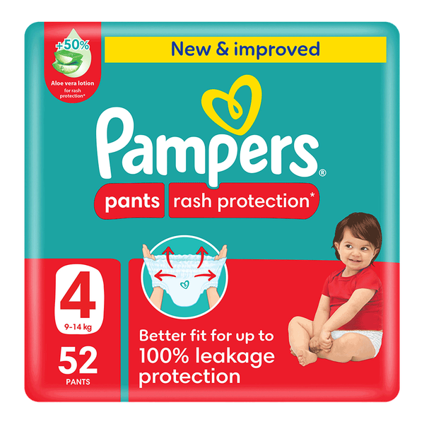 Pampers rash protection pants with dual leak barriers and stretch fit for babies on the move - Size 4