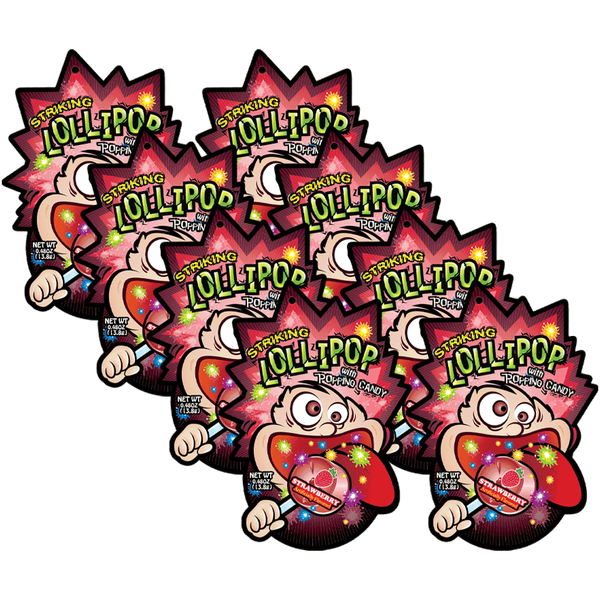 Popping strawberry lollipop delivering fresh fruit flavor with a fizzy crackle twist for a playful candy bite - 8 x 13.8 gm