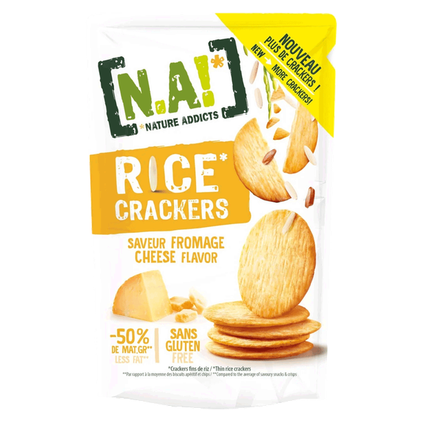 Cheese flavor rice crackers with savory taste and crunchy texture ideal for lunchboxes or low-calorie snacking - 85 gm