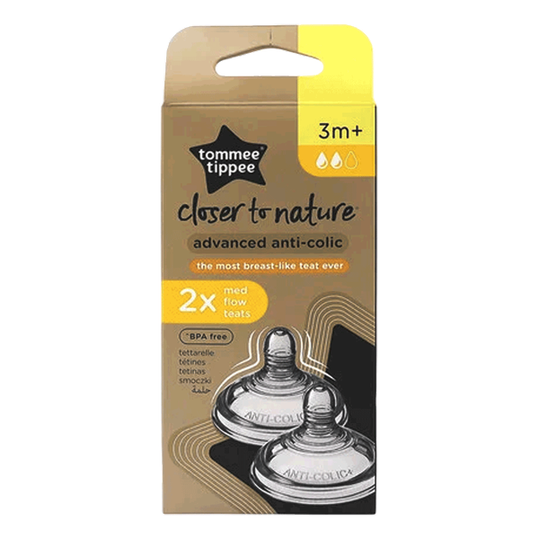 Anti-colic teats with medium flow help reduce gas spit-up and discomfort with triple-vent valve design - 2 Pcs