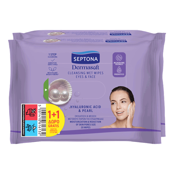 Pearl and hyaluronic acid wipes for radiant, moisturized skin - 2 x 20 wipes