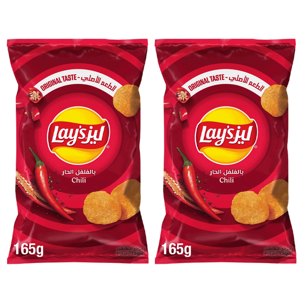 Twin pack of spicy chili-flavored potato chips delivering bold taste and crunch. - 2 x 155 gm