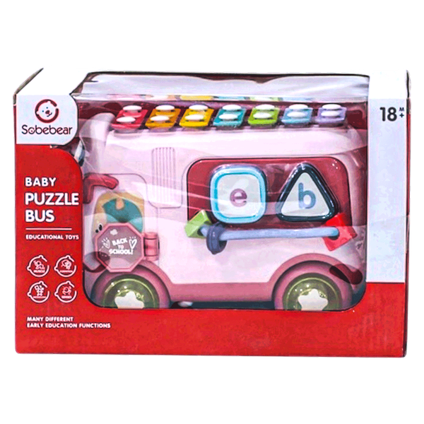 Multifunctional baby xylophone educational bus in pink color