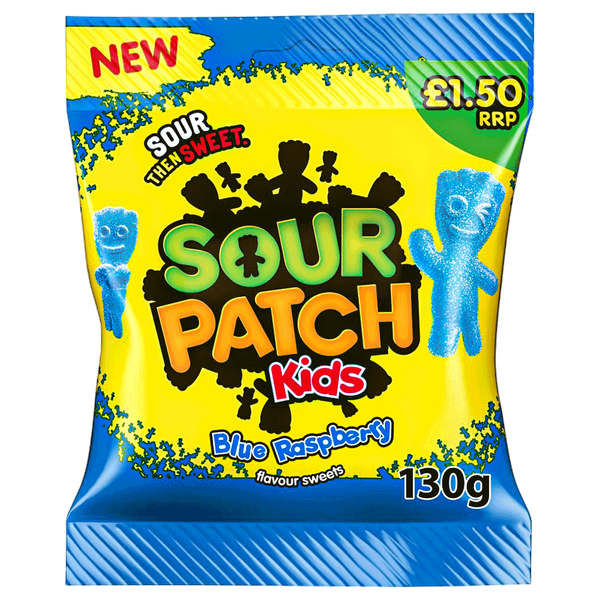 Sour Patch Kids blue raspberry sweets bag, tangy and chewy - 130 gm