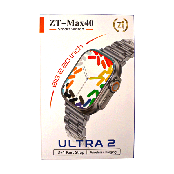 ZT-Max 40 Ultra 2 smartwatch with wireless charging, AMOLED display, and advanced health tracking features