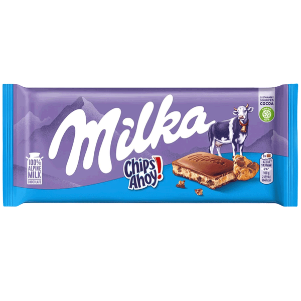 Smooth Milka chocolate blended with crunchy Chips Ahoy cookie pieces for a rich and indulgent treat. - 90 gm