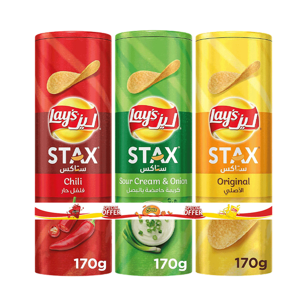 Stackable crispy potato chips in a triple pack for ultimate crunch - 3 x 170 gm