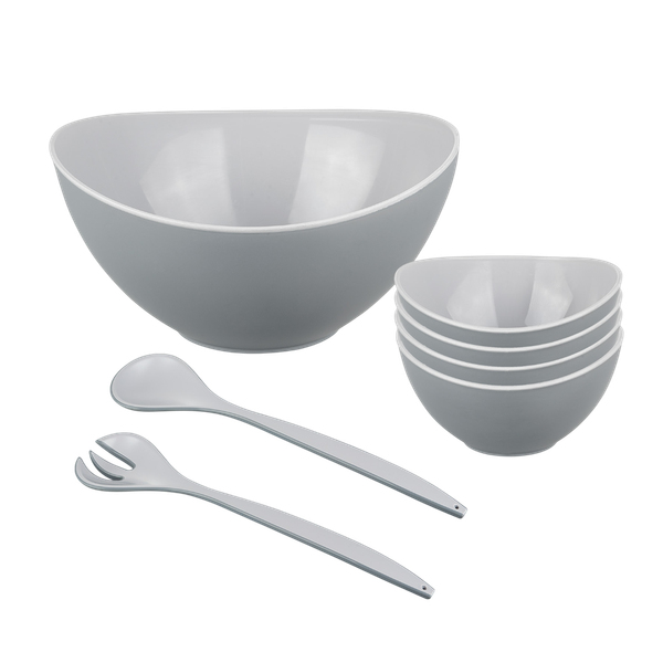 7-piece green salad set with serving bowls and utensils - 4 x 400 ml, 1 x 3000 ml, fork, spoon