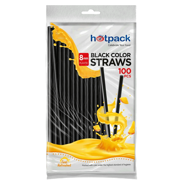 Black straight straws for drinks – 100 pcs