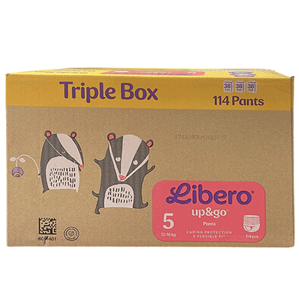 Premium soft pull-up style pant diaper designed for active babies and toddlers, with breathable materials, super absorbent core for up to 12 hours of dryness, secure elastic waist and leg cuffs for a flexible fit, and a wetness indicator for easy change timing - 114 Pcs