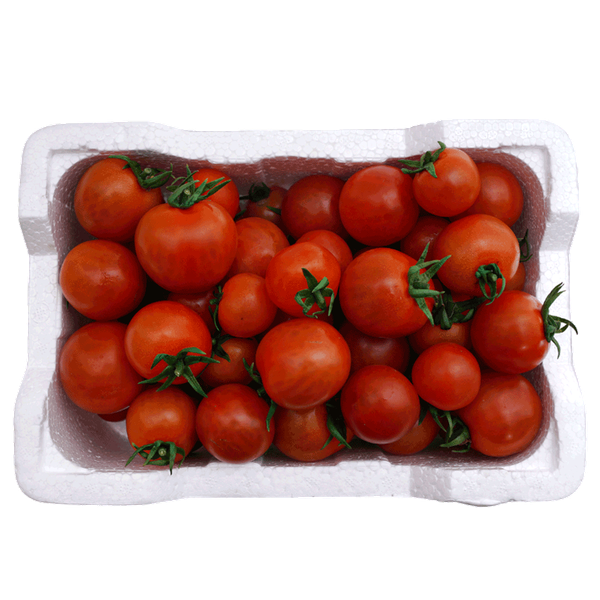 Fresh organic cherry tomatoes with a juicy bite, perfect for salads, snacking, and light dishes - Foam Box
