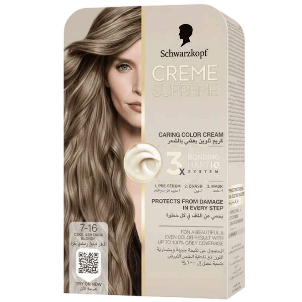 Schwarzkopf Cool Ash Dark Blonde Color Cream Kit - No. 7-16 - Drops