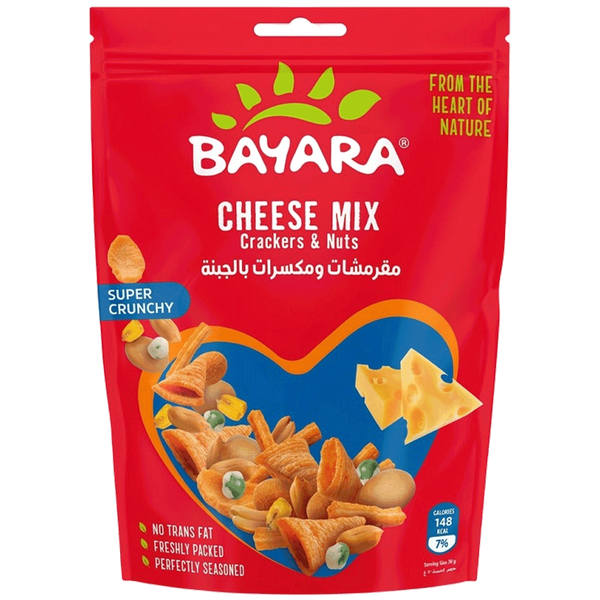 Mix of Crackers & Nuts. With an irresistible crunch, this mix of peanuts, corn, krikri and crackers is coated with rich Cheese seasoning with no trans fat - 125 gm