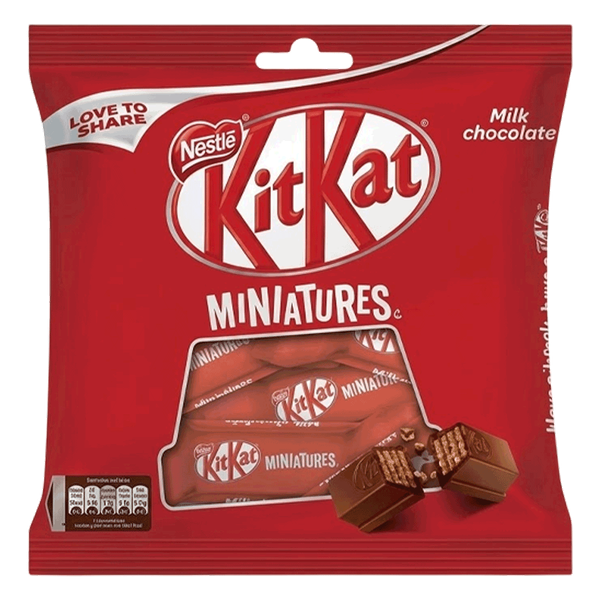 Mini KitKat chocolate bars with crispy wafer layers coated in smooth milk chocolate, perfect for sharing and snacking. - 2 x 94.5 gm
