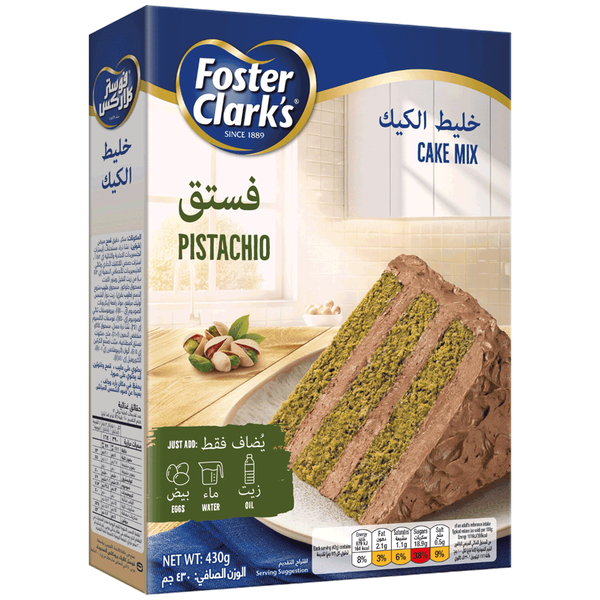A ready-to-use cake mix that lets you easily prepare a soft, fluffy cake with a rich pistachio flavor. Just add eggs, oil, and water, mix, and bake for a delicious homemade-style dessert - 430 gm