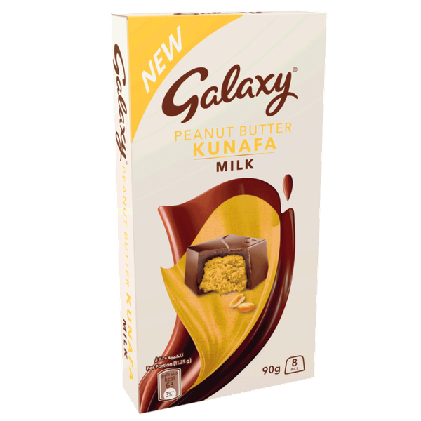 Creamy chocolate with a rich peanut butter filling with the delicate crunch and sweetness of kunafa - 90 gm