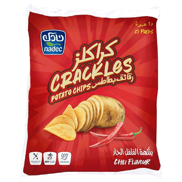 Thin, crispy, and bold chips made from 100% local Saudi potatoes, Contain no artificial colors - 25 x 21 gm